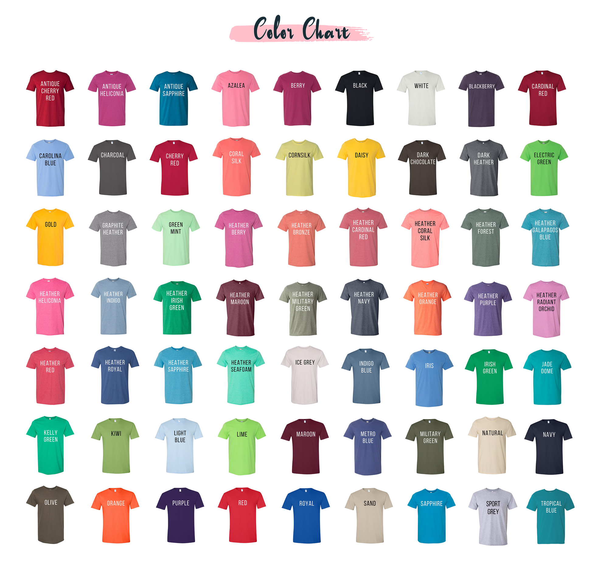 **Size Charts are available in the menu tab**